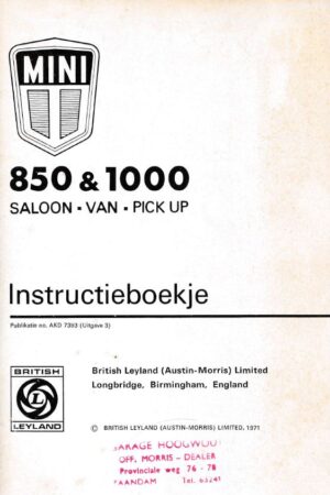 1971 Instructieboekje Mini 850/1000 AKD7393, Uitgave 3