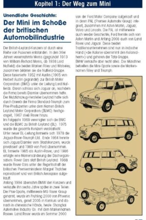 In gewohnter Typenkompass-Manier werden alle wichtigen Modelle vorgestellt, darunter der ikonische Mini Cooper und der sportliche Mini Clubman GT. Im Jahr 2000 lief der letzte klassische Mini bei Rover vom Band, doch mit der Übernahme durch BMW erhielt der New Mini eine neue Identität. Modernes Design und leistungsstarke Technik unter der Haube machen ihn zu einem zeitgemäßen und beliebten Kleinwagen.